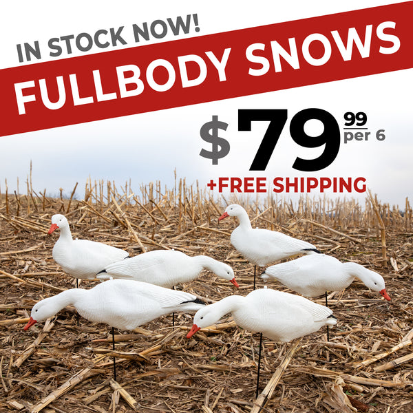 $79.99 Per 6 + FREE SHIPPING! (to the USA) | This full sized snow goose fullbody is meant to BULK up your spread quickly and as cheap as possible! Ready for immediate shipping.